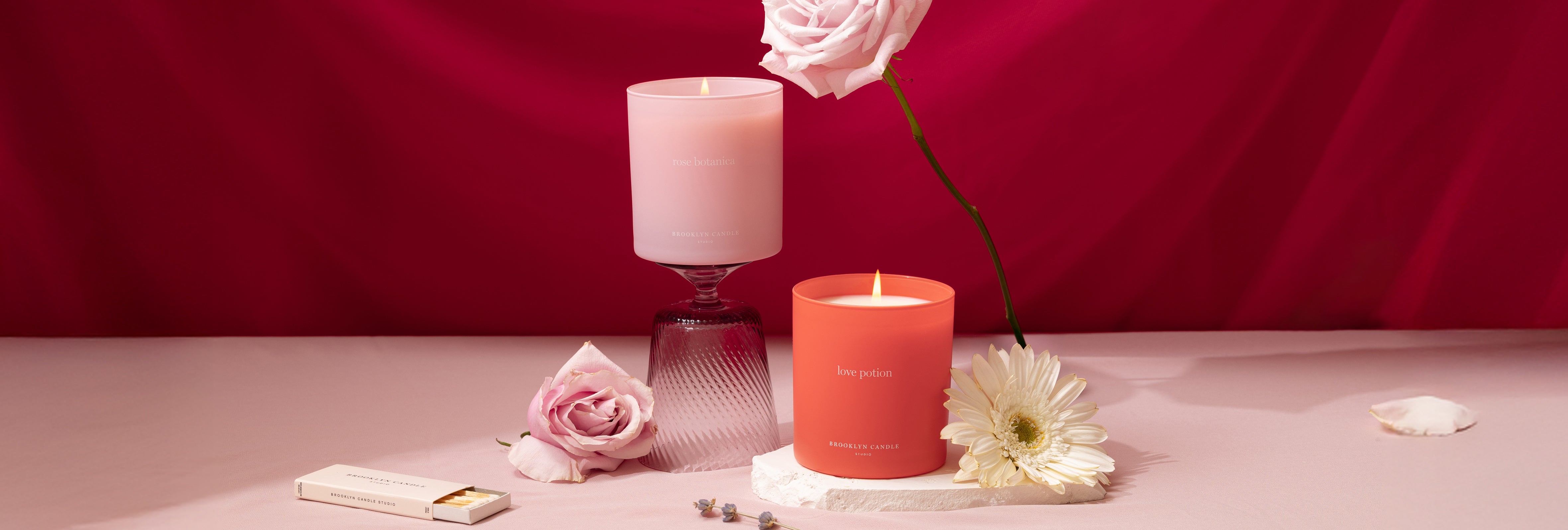A match made in heaven, our Valentine's Day candle duo naturally features a perfect pair with floral flair: Rose Botanica and Love Potion. Poured in matte pink and red screen printed vessels packaged in graphic boxes inspired by vintage posters, this giftable duo smells just amazing as fresh flowers and lasts longer, too.