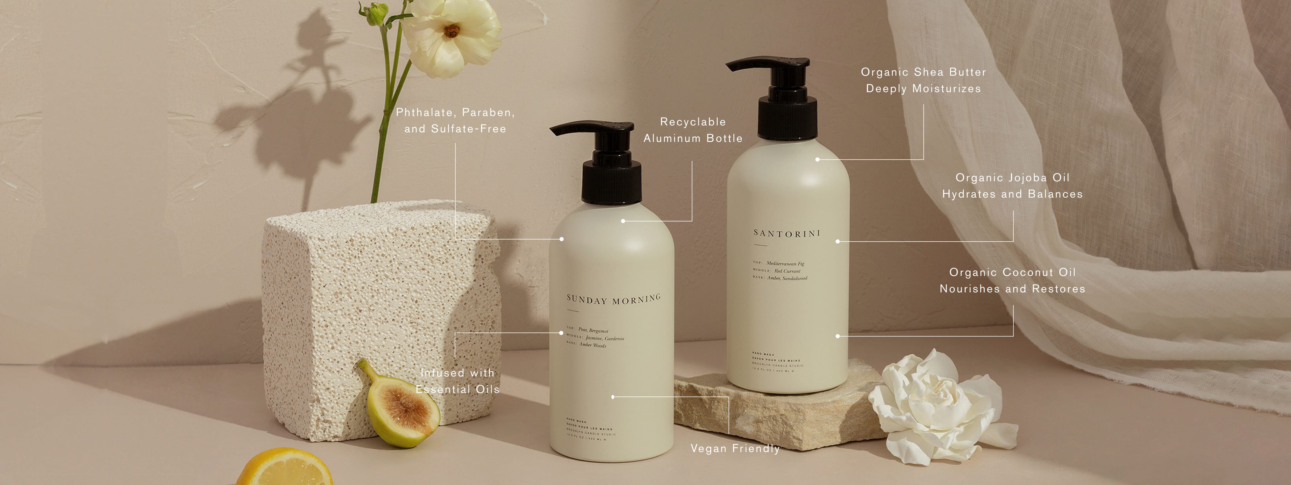 Our Santorini hand + body wash is an elevated everyday essential, fortified with certified organic ingredients such as jojoba, olive, and coconut oil as well as aloe vera and shea butter to nourish, soothe, and pamper your skin. Formulated without parabens, phthalates, or sulfates. Packaged in an infinitely recyclable and reusable aluminum bottle.